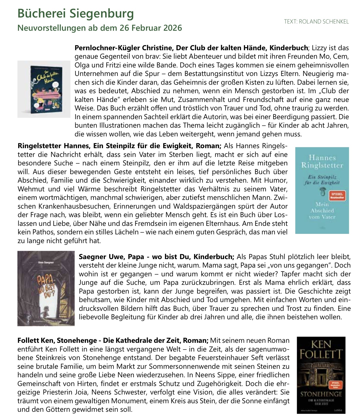 An folgenden Feiertagen 2026 ist die Bücherei geschlossen: